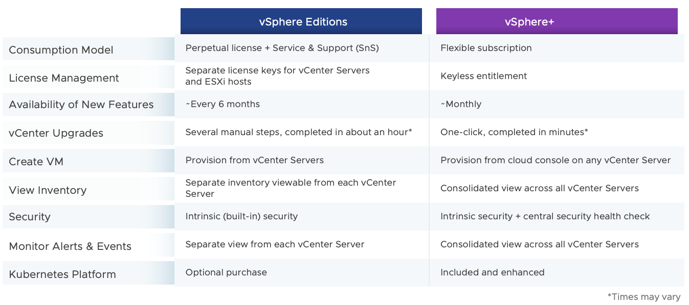 - vSphere+ 는 기존 vSphere Enterprise Plus와 매핑