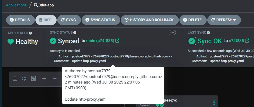 이제는 ArgoCD에서 사용할 수 있도록, github의 kustomization.yaml 파일의 deployment를 rollout 파일로 대체 사용합니다. 이렇게 하면 우리는 자동화된 단계별 rollout 시나리오를 수행할 수 있습니다.