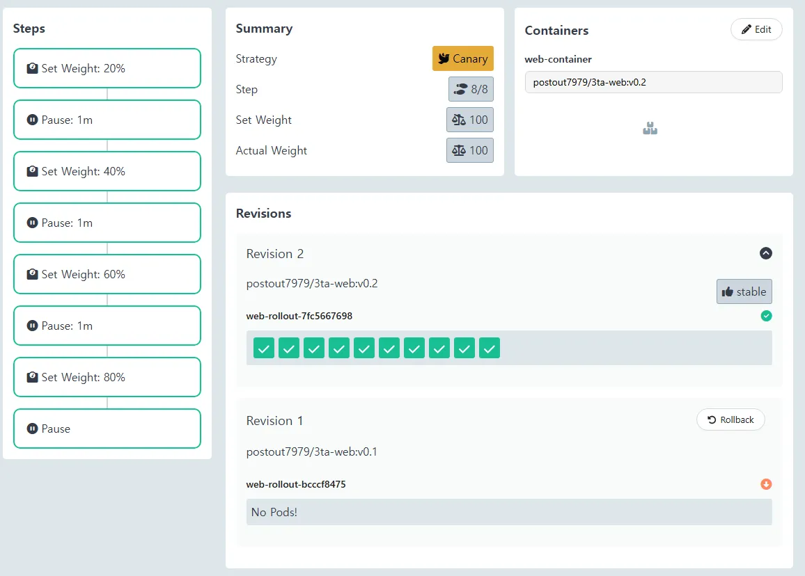 kubectl-argo-rollouts set image web-rollout web-container=postout7979/3ta-web:v0.2 -n rollout-demo