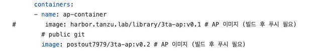 - namespace, rollout name, container name, image path:tag 를 입력합니다.